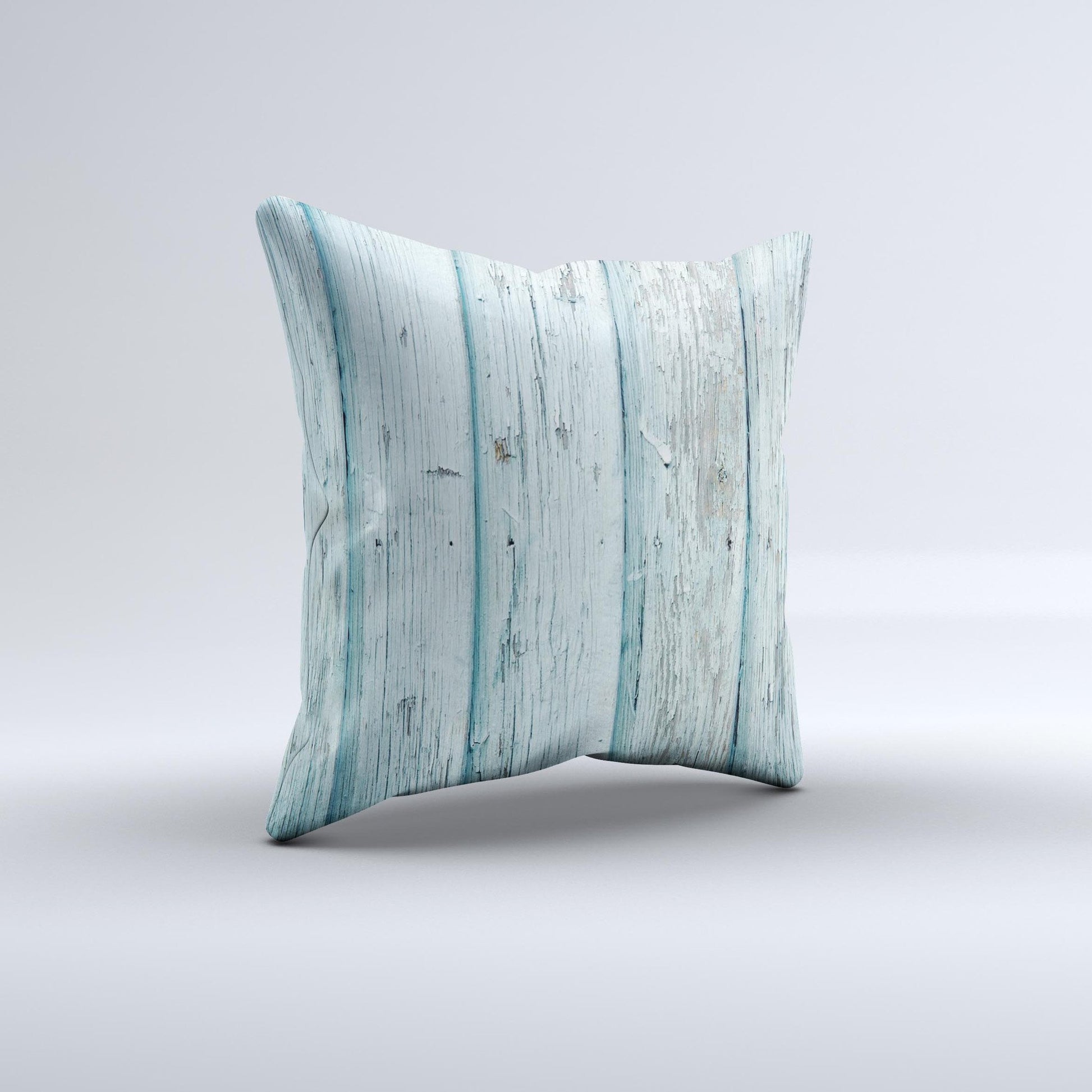 Subtle Blue Vertical Aged Wood Ink-Fuzed Decorative Throw Pillow