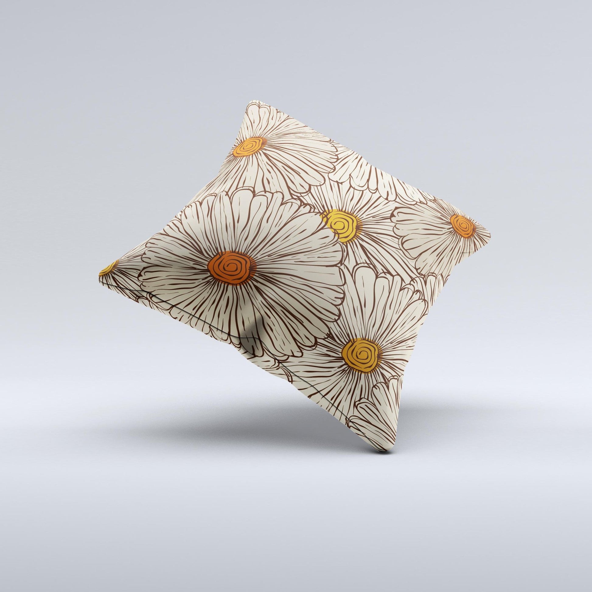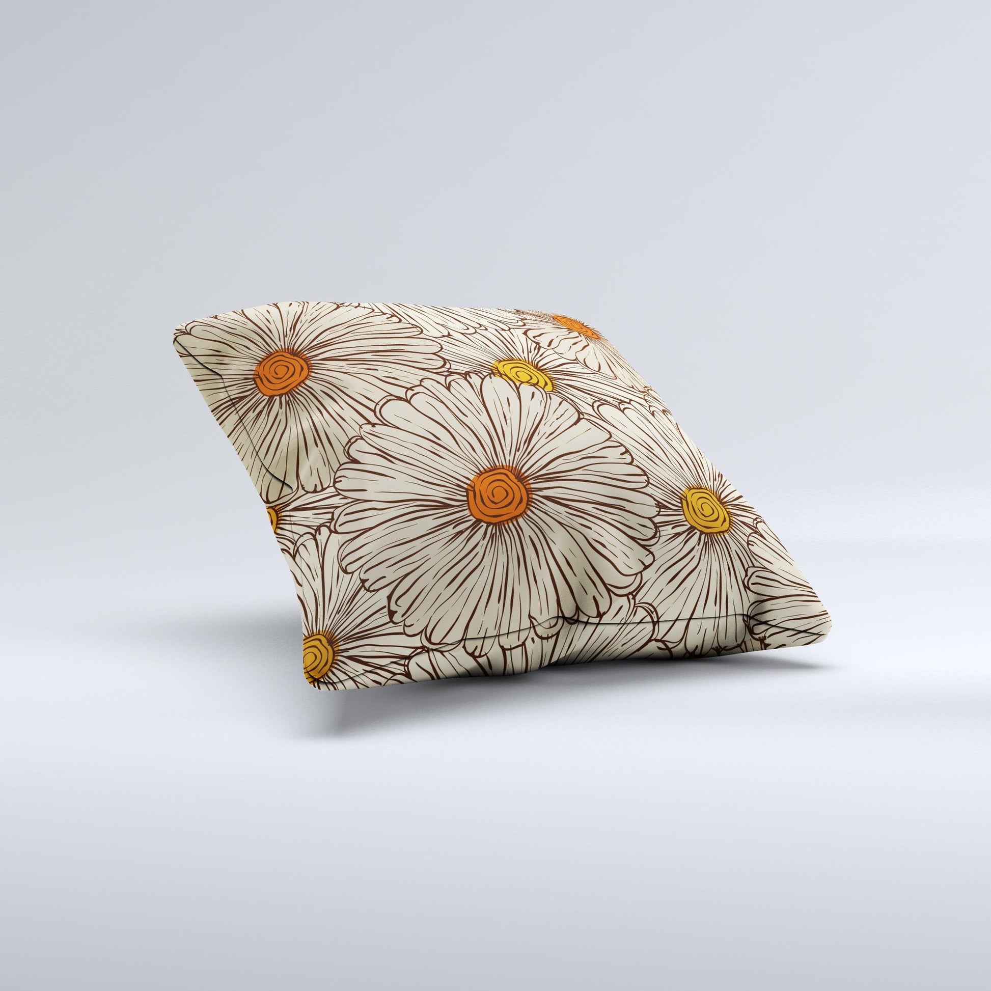 Tan & Orange Tipped Flowers Pattern ink-Fuzed Decorative Throw Pillow